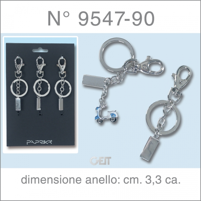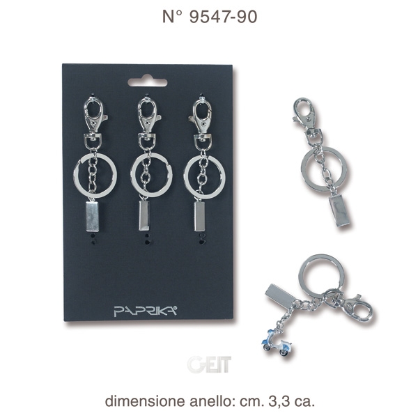 Base uso ciondoli. Moschettone + catenina + anello + piastrina. Ciondolo NON compreso nel prezzo. In cartella da 6 pz. (con doppia funzione 'da banco' e 'da parete')